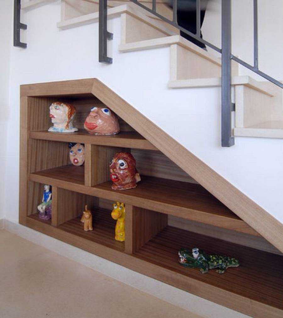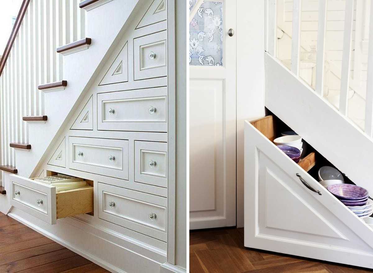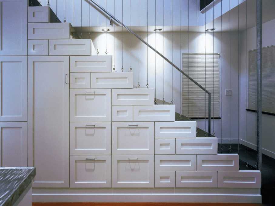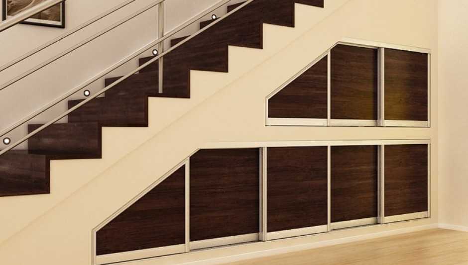 Виды встроенных в лестничный марш конструкций шкафов: 5 вариантов