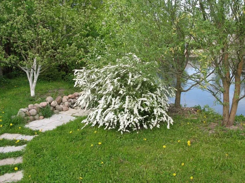 Аргута. Эта разновидность отличается настолько пышным цветением, что из-за белого кружева цветов не видно листвы. Благодаря раскидистой структуре растения побеги не нуждаются в обрезке, дугообразной формы они вырастают до 2м. Короткий период цветения с конца апреля, длится около 20 дней.