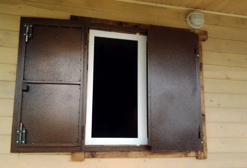 Наибольшую защиту от взлома обеспечивают металлические изделия, по прочности порой превосходящие саму стену. При этом устанавливаться они могут также изнутри дома. Поэтому нередко выступают в качестве элемента интерьера, например, в стиле «кантри».