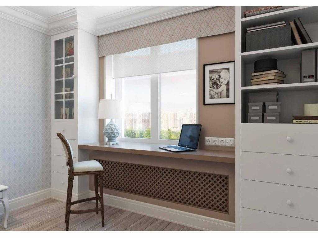 Дополнительным преимуществом этого рабочего места является наличие парового нагревателя прямо у ваших ног, что будет особенно приятно в холодные зимние и осенние месяцы. Но не забудьте сделать и правильно оформить вентиляционные отверстия, которые позволят теплому воздуху выходить из радиатора и создадут тепловую завесу для окна.