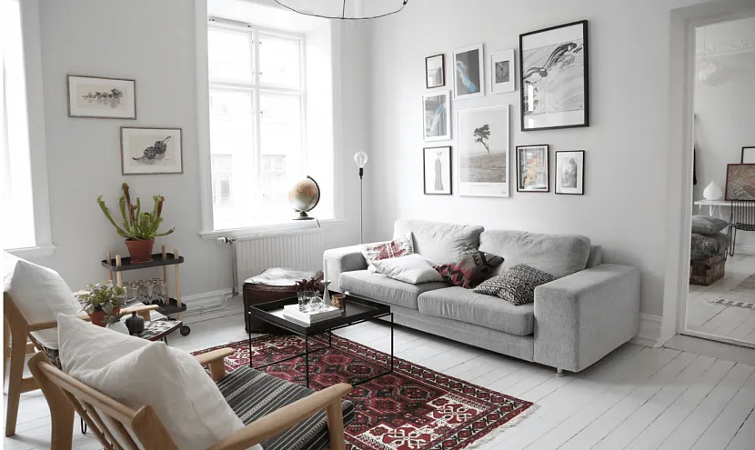 деревеный пол с небольшим ковриком – лучшее решение для оформления гостиной в шведском стиле