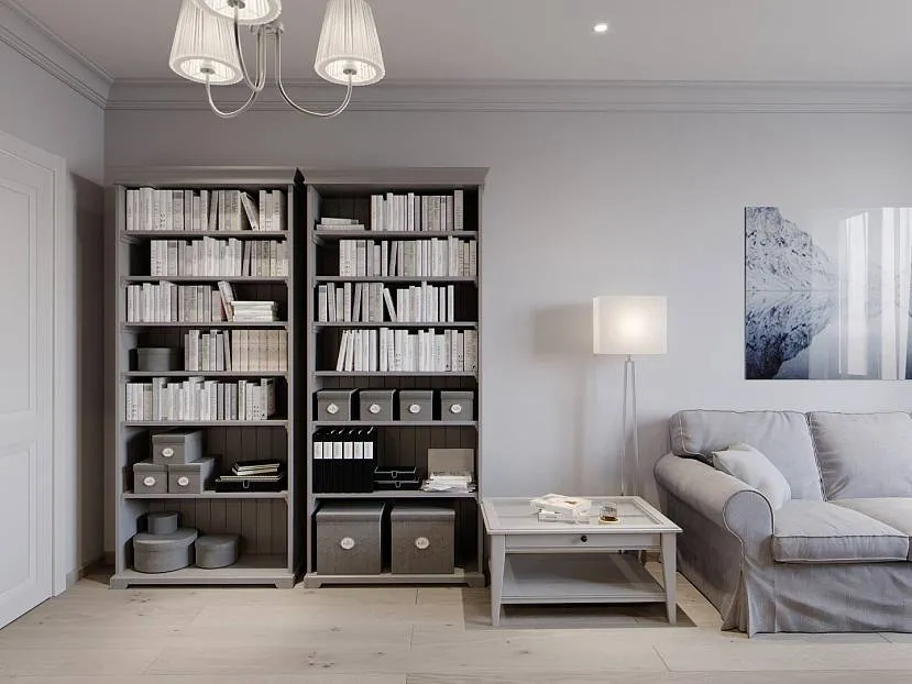 Владельцы некоторых квартир могут позволить себе выделить помещение под кабинет. Если у вас возникают параллели с помещением с массивным лакированным деревянным столом, добротной тяжелой настольной лампой в классическом стиле, элитными канцелярскими принадлежности, то это не про шведский стиль. Что будет в кабинете со шведским дизайном: