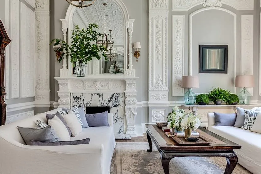 Классика. Интерьер, выстроенный по принципам симметрии, с четким композиционным центром; включает элементы одного из исторических направлений: классицизма, ампира, барокко или рококо. Характерная особенность — стремление к роскоши, строгой или безудержной, в зависимости от направления. Отсюда использование лепнины, дорогой мебели, роскошных тканей, картин, паркета, люстр и диванных подушек.