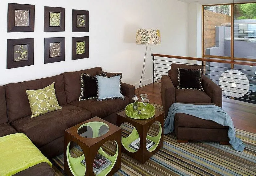 В интерьере с темной мебелью можно использовать яркие украшения. В помещении красиво смотрятся красные корешки книг на полках или салатовые занавески рядом со шкафом. На пестрый ковер можно поставить стол или кровать. Чтобы дизайн не стал безвкусным, нельзя сочетать более 3 цветов.